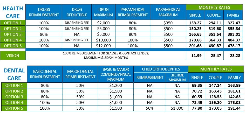All Health and Dental maximums are per person per calendar